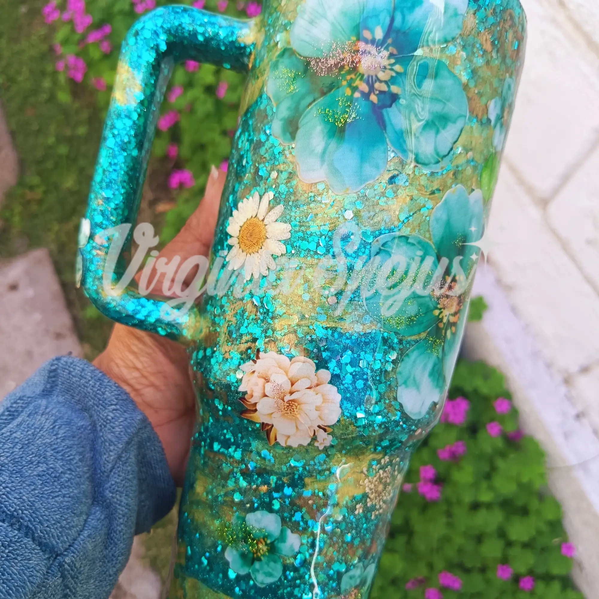 Descubre María Verde, un vaso térmico de 1200 ml diseñado de forma artesanal con técnica en resina, ideal para quienes buscan un producto exclusivo, elegante y lleno de significado.